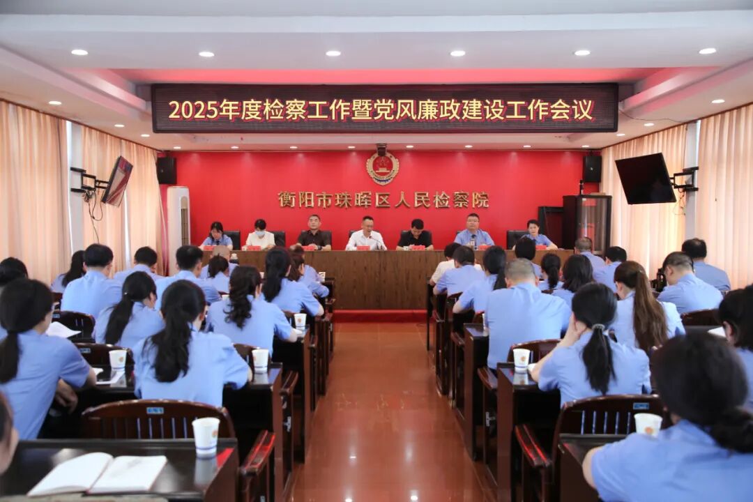 4月21日上午,珠晖区人民检察院召开2025年度检察工作会议暨党风廉政建设工作会议。区委常委、政法委书记颜晓曦,区人大常委会党组成员、副主任谭咸龙,区政协党组副书记、副主席邓志超,区纪委监委驻区人大机关纪检监察组组长刘海花应邀到会指导,全体检察人员参加会议。