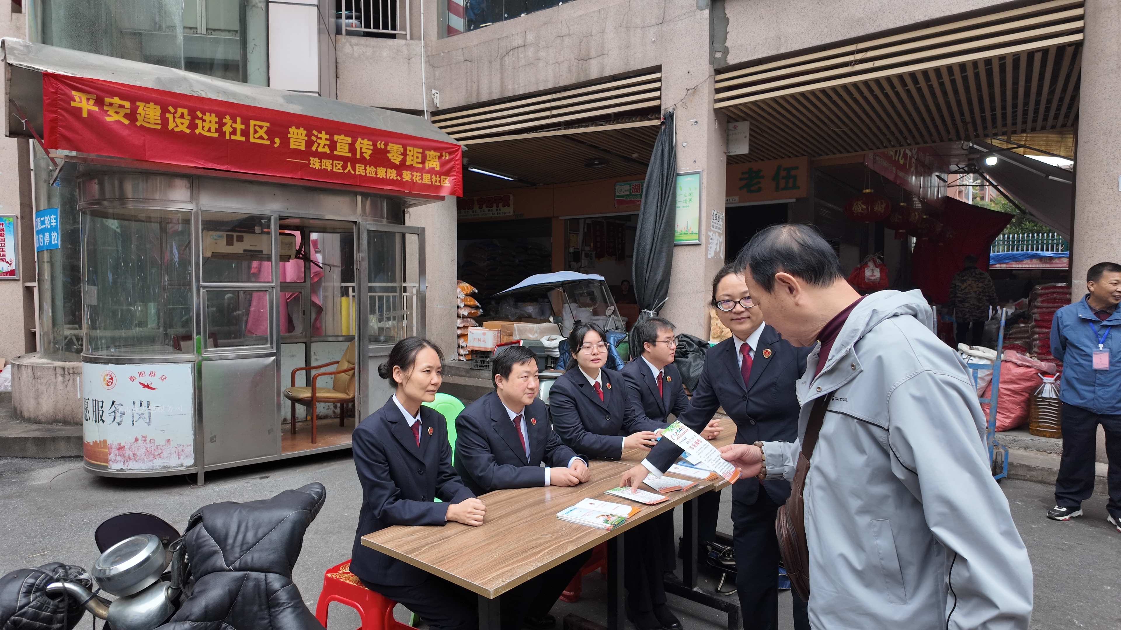 检察干警联合葵花里社区工作人员在衡州大市场开展“平安建设进社区,普法宣传‘零距离’”宣讲活动。